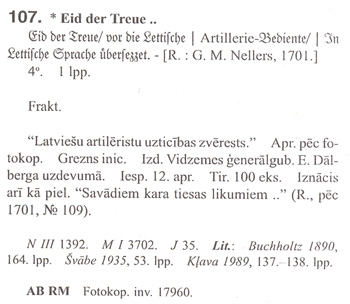 Eid der Treue vor die Lettische Artillerie=Bediente, RA